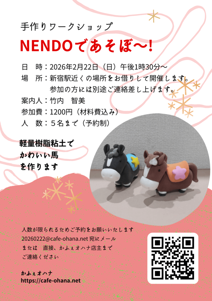 人数が限られているためご予約をお願いします20260222@cafe-ohana.net 宛にメールか、直接、かふぇオハナの店主までご連絡ください。